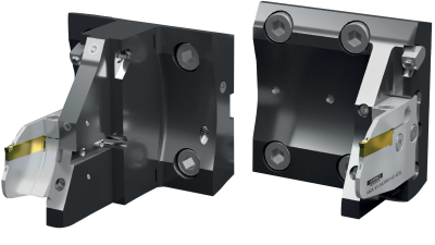 The SE Groove and Copy Turn system is capable of grooving, parting, and copy turning in a wide range of component sizes, ranging from miniature to large. It’s especially helpful on CNC Swiss lathes, where you’re limited to 5 or 6 stations to perform all external turning operations. Turning and profiling between shoulders can now be done with one tool, all while the full radius insert option enables you to blend complex features more smoothly.