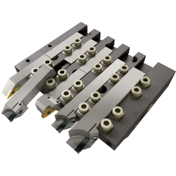 It's the comprehensive quick change tooling solution for your Swiss machine. The program consists of an innovative through coolant gang plate and split shank tooling that work as a complete system to give you 30 second tool changes that repeat within +/-.001". Spend less time changing tools and more time making parts.