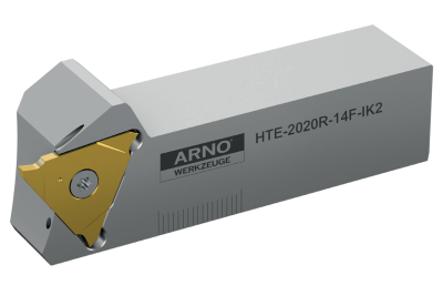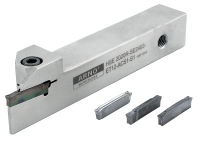 Arno's HTE 3 edge through coolant grooving system... is the perfect combination of performance and economy. Precision ground inserts ensure precise location and groove tolerance while mitigating cutting pressure. The dual port coolant extends tool life and reduces failure.