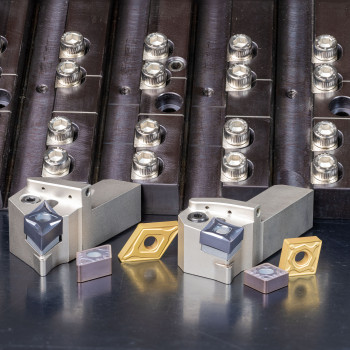Two new CVD coated grades for machining all Steel alloys (P material group). A new coating process results in a very low friction cutting surface which greatly reduces heat and crater wear.