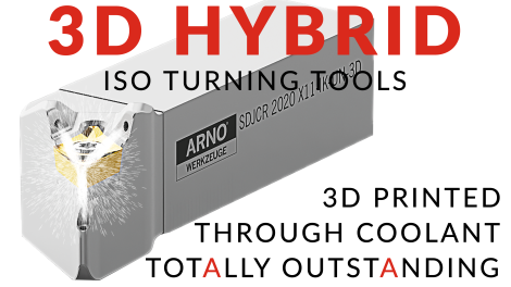 The latest through coolant innovation from ARNO Werkzeuge... 3D Hybrid OD turning tool holders. Additive Manufacturing now allows us to create internal channels that encourage more natural coolant flow from the induction point to the cutting edge of the insert. The future of internal coolant is the elimination of restrictive cross-drilled holes, and ARNO is leading the way.