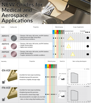 Three new PVD coated grades are increasing tool life in some of the toughest Medical and Aerospace alloys such as Titanium, Cobalt Chrome, Inconel, and PH Stainless Steel
