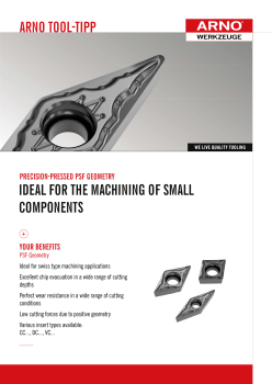 The Precision Pressed and Sintered -PSF geometry is ideal for Swiss type machining but excels in any small component machining application. The positive geometry ensures lighter cutting forces so your small components won't push away from the cutting tool while the accuracy of the precision pressed edge definition ensures the best tool life in difficult materials.